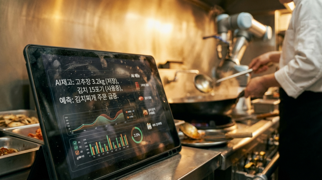 요식업계의 변화는 더욱 피부에 와닿습니다. **제너시스BBQ**는 AI를 단순한 조리 도구가 아닌 ‘실행 인프라’로 정의했습니다. 주문 접수부터 조리, 물류 배송, 그리고 가맹점주의 예상 매출 분석까지 AI가 통합 관리하는 시스템을 구축했습니다.